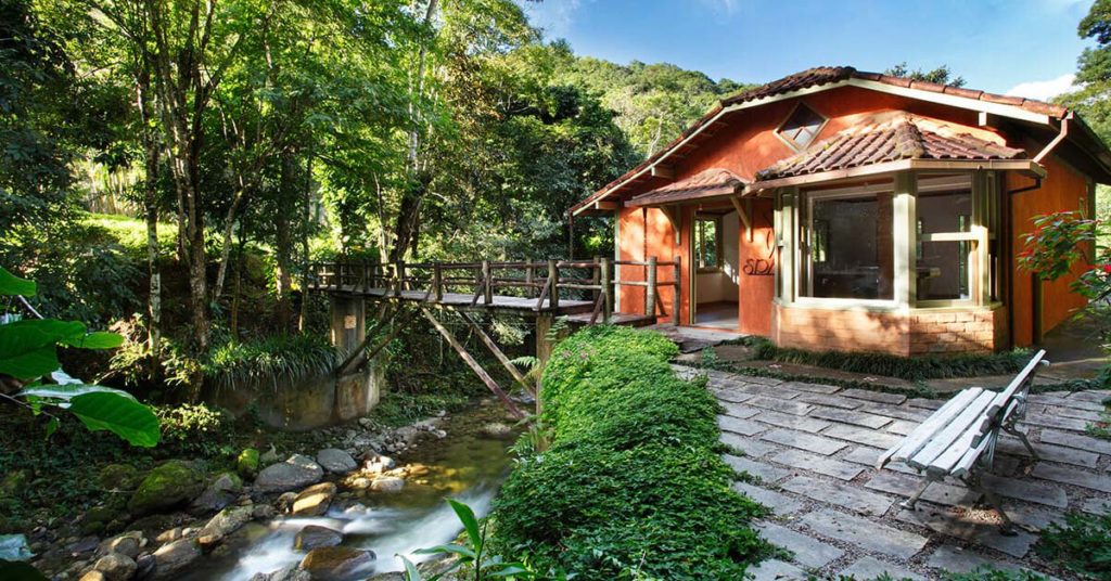 Empreendimento auto-sustentável, ecologicamente correto, com apenas 10 Chalés, 4 com 49,00m² (chalés do alto) e 4 com 38,00m² (Chalés do Jardim) e 2 Chalés do Bosque Hidro, todos igualmente com o nível máximo de conforto, com varandas, redes, camas King Size, aquecedores a óleo (sem fogo), frigobar, ar condicionado, TV a cabo, DVD, secador de cabelos, travesseiros antialérgicos e plumas de ganso (a escolher na hora).