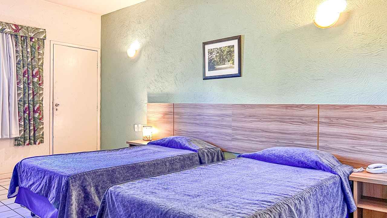 São 48 apartamentos Standard, 44 apartamentos Luxo e 4 suítes decorados para acomodar sua família. Nossos amplos e confortáveis apartamentos e suítes possuem decoração e mobiliário em constantemente remodelação e manutenção. Todos os apartamentos possuem ar-condicionado, frigobar, TV a cabo, wi-fi e cofre.
