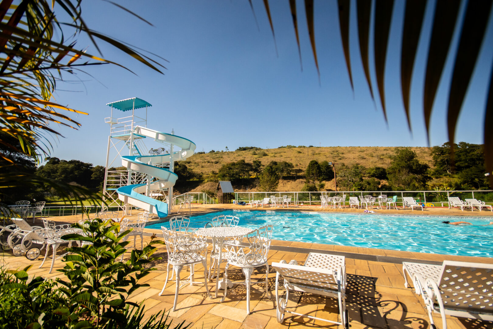 4 Piscinas: 1 Aquecida e Coberta, 1 infantil, 1 adulta com tobo agua e 1 Tem cachoeira