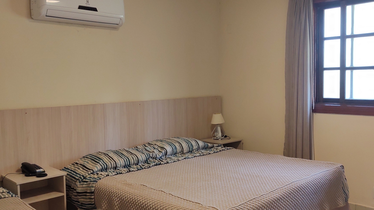 TV a cabo, frigobar, ar condicionado, banheiro privativo, cofre individual e wi-fi. Não há transfer interno.